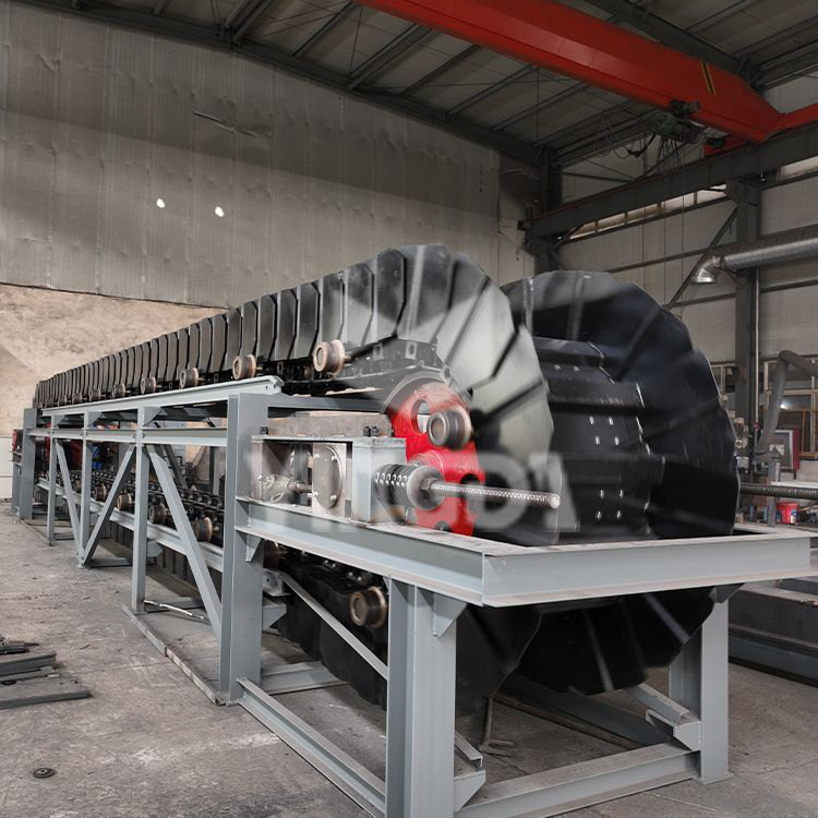 鏈斗機(jī)由高強(qiáng)度牽引鏈條、耐磨料斗、頭尾驅(qū)動(dòng)輪組、箱體結(jié)構(gòu)及自動(dòng)張緊系統(tǒng)構(gòu)成閉環(huán)輸送體系。其核心優(yōu)勢(shì)體現(xiàn)在:
